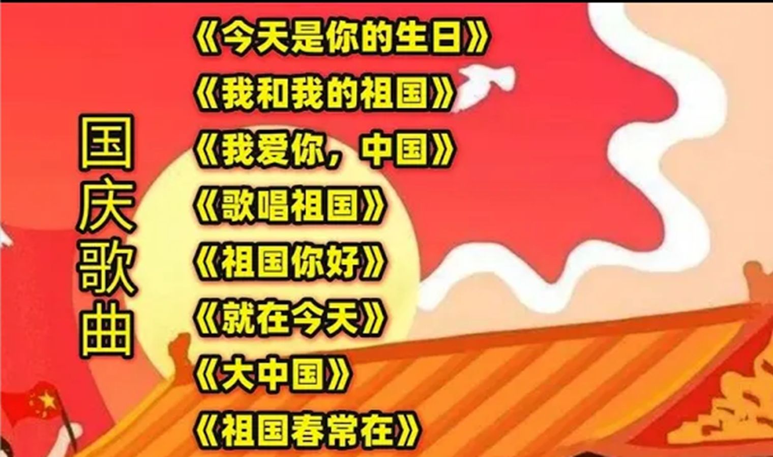 国庆歌曲《今天是你的生日》《我和我的祖国》《我爱你,中国》