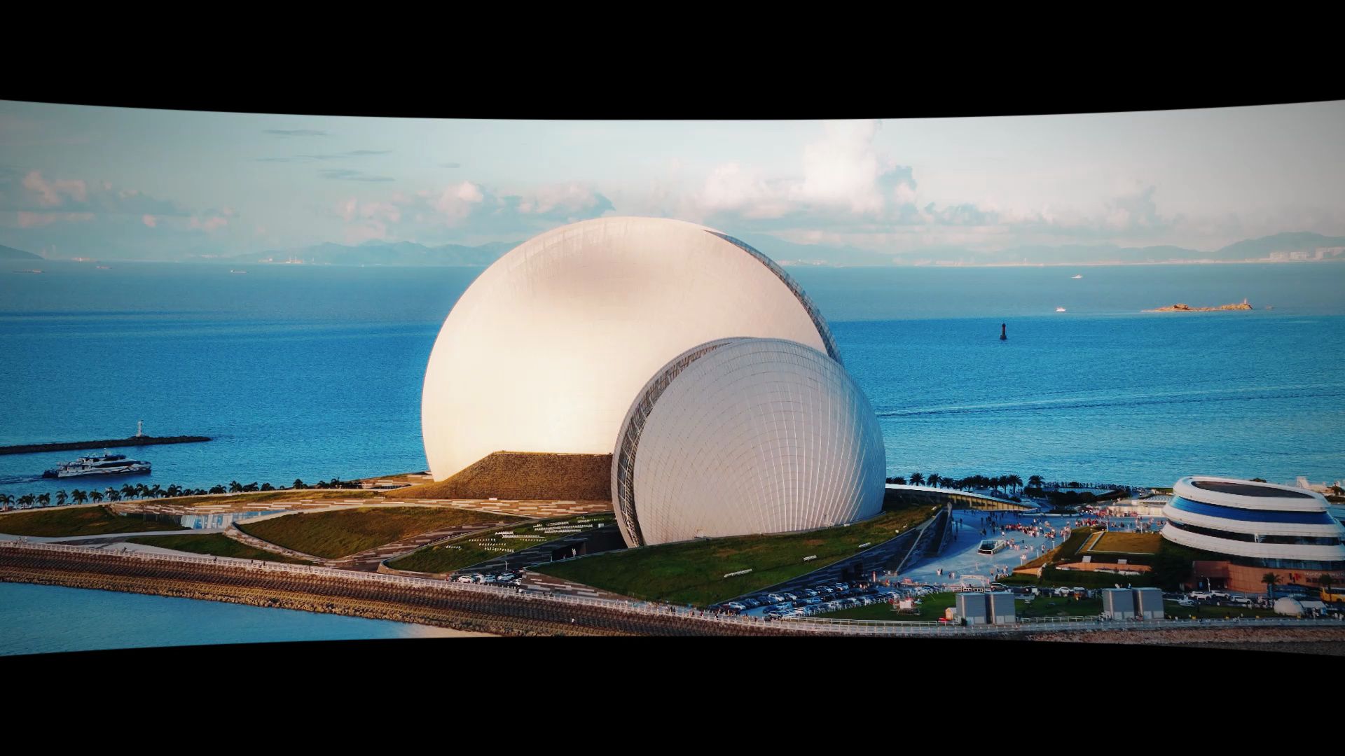 地面视角的珠海日月贝:不就两个贝壳?空中视角的珠海日月贝:绝了!有海的城市总是会更浪漫些,你们说对嘛?