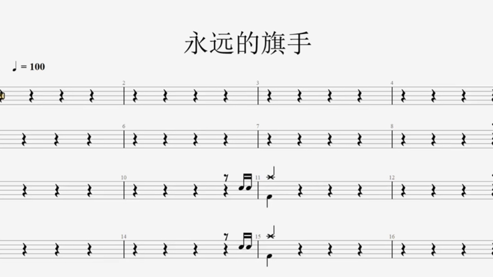 九拍架子鼓考级曲8级《永远的旗手》高级比赛架子鼓爵士鼓动态鼓谱
