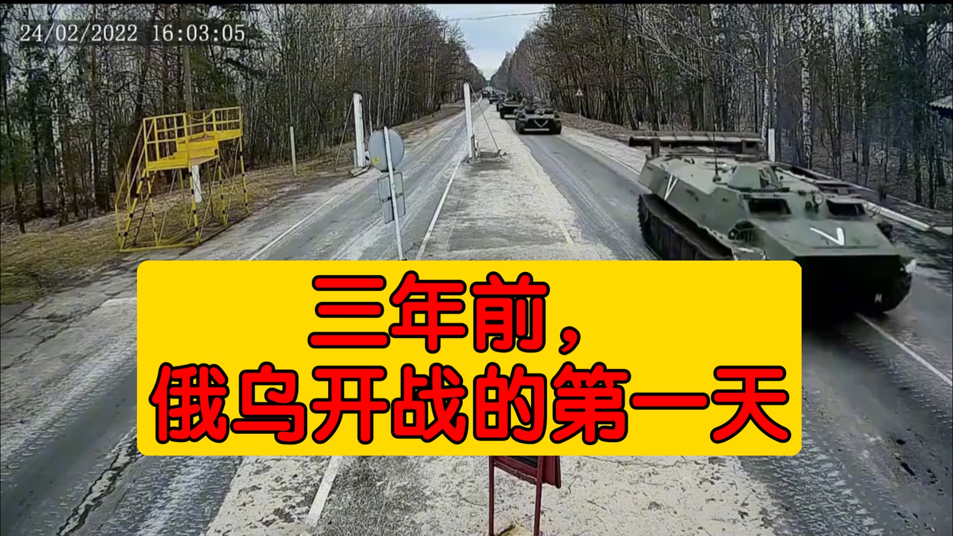 三年前,2022年2月24日,俄乌开战的第一天,乌克兰一边境站摄像头录下来俄罗斯一支重装部队从边境“进入”乌克兰国土的情景