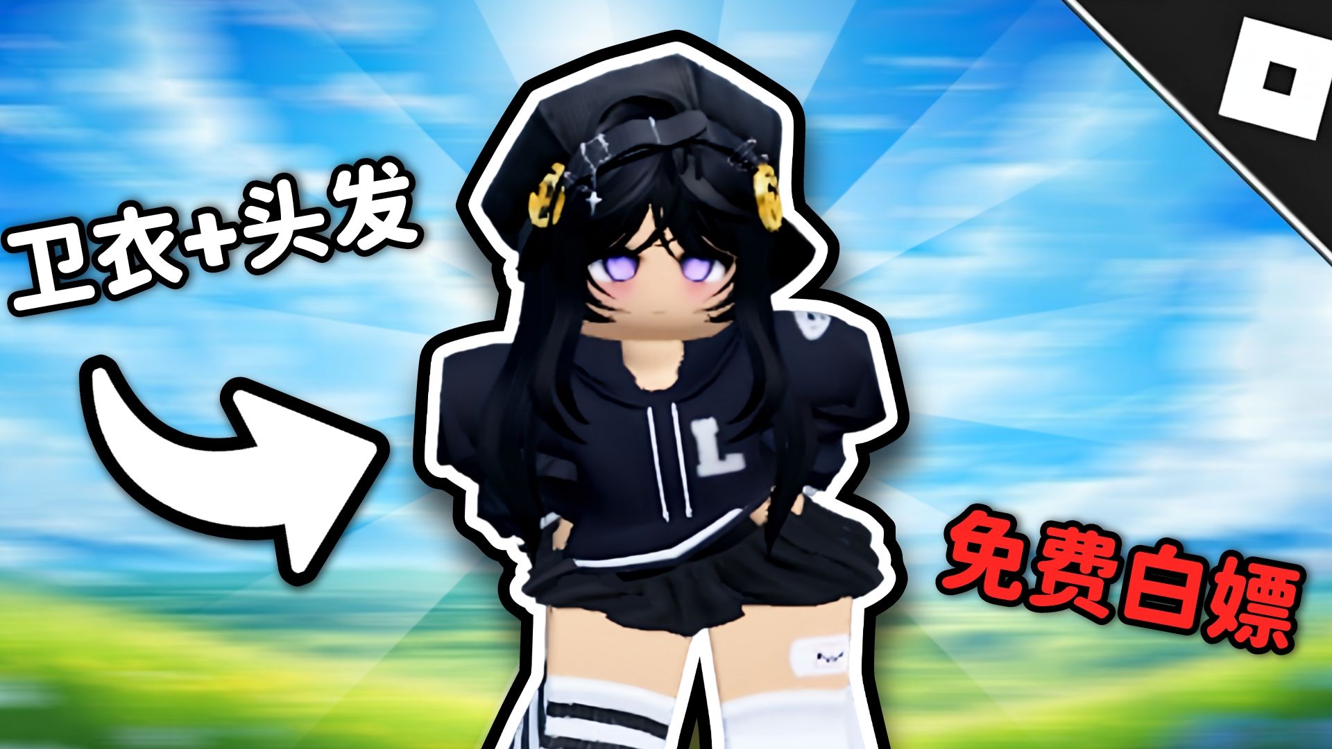 Roblox限量,限时,人人都能获取的超级简单装扮!免费的长发头发以及一件黑色卫衣装扮!