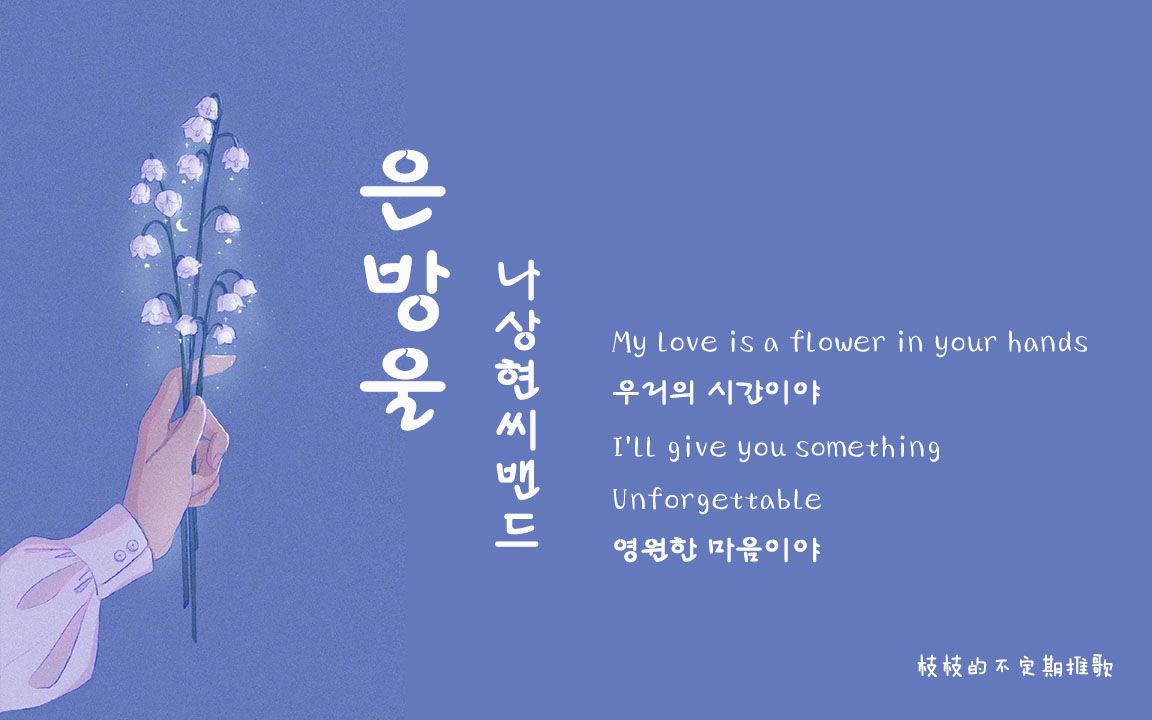 UP主: 封面: 简介:这里是【之之是枝枝】的不定期推歌 放空片刻,享受当下 ♪ ♪ ♪ 歌名:은방울 (Lily of the Valley (Original: DANIEL))歌手: 나상현씨밴드(罗尚贤先生的乐队)专辑名...