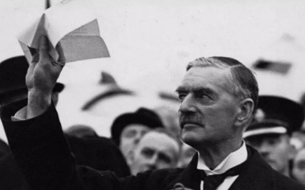 [黑白影像上色]内维尔·张伯伦在签署了《慕尼黑协定》后回国发表的讲话 - 彩色版