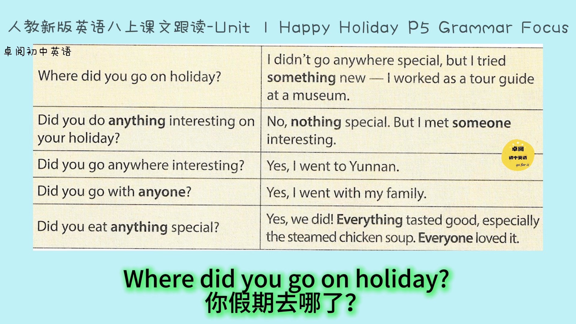 【预习神器】2025秋人教新版英语八上课文跟读-Unit 1 Happy Holiday Section A Grammar Focus(逐句暂停版)