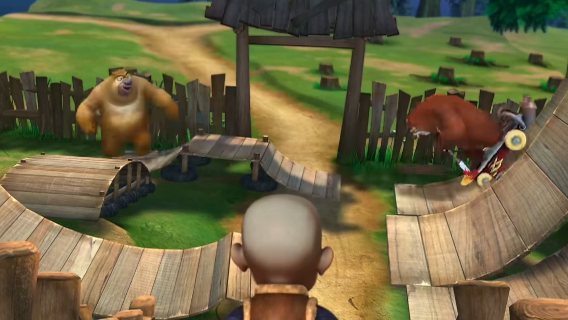 熊大熊二和光头强都用滑板来对付对方【熊出没之丛林总动员】