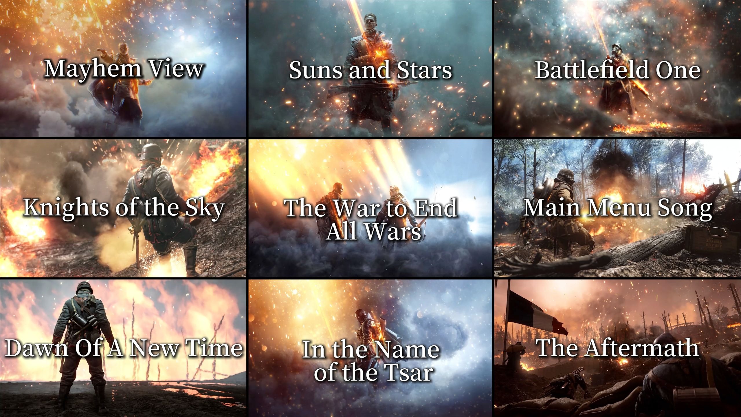 UP主: 封面: 简介:00:00 Mayhem View/混乱视角03:11 Suns and Stars/太阳和星星05:56 Battlefield One/战地一09:13 Knights of the Sky/天空骑士12:27 The War to End All Wars/结束所有战...