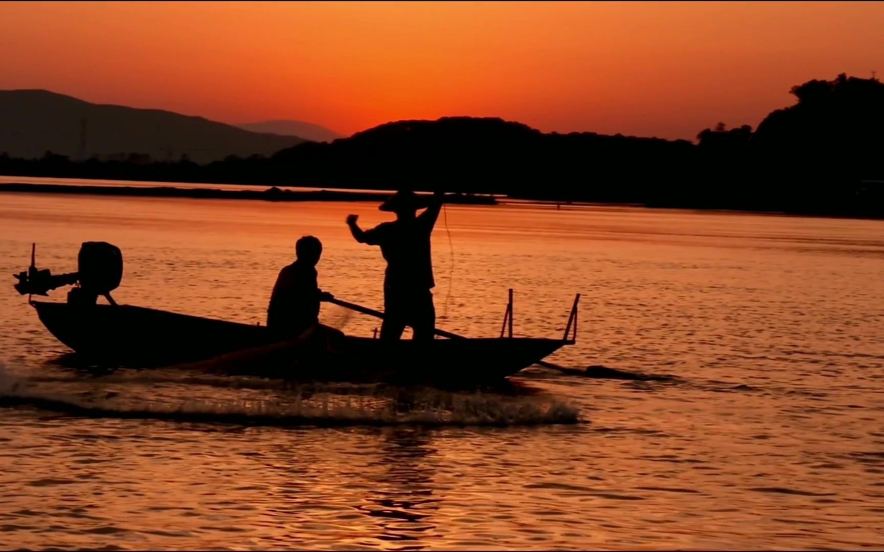 落日余晖、彩霞灿烂,渔歌悠扬、满载丰收