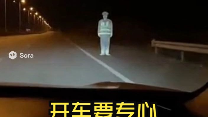 sora2自制交通安全影片,提醒大家开车不要东张西望,尤其是晚上