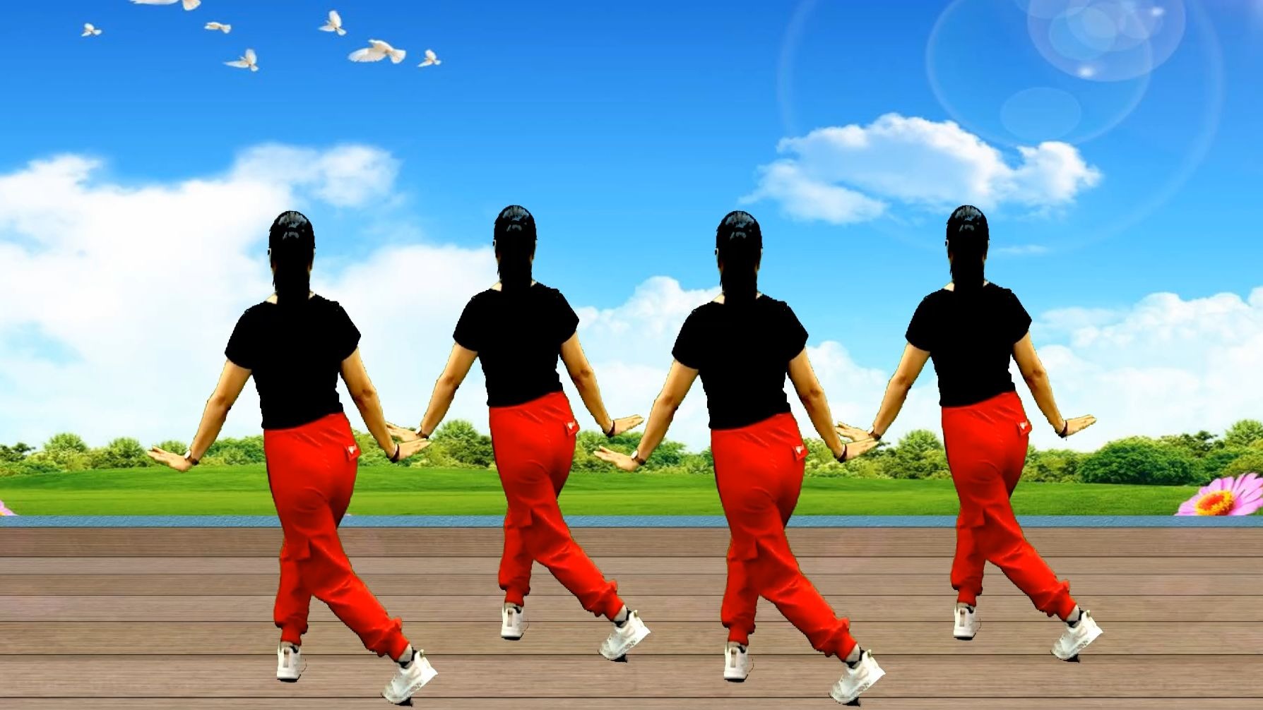 广场舞《天南地北唱中华》简单霸气花球舞 背面演示