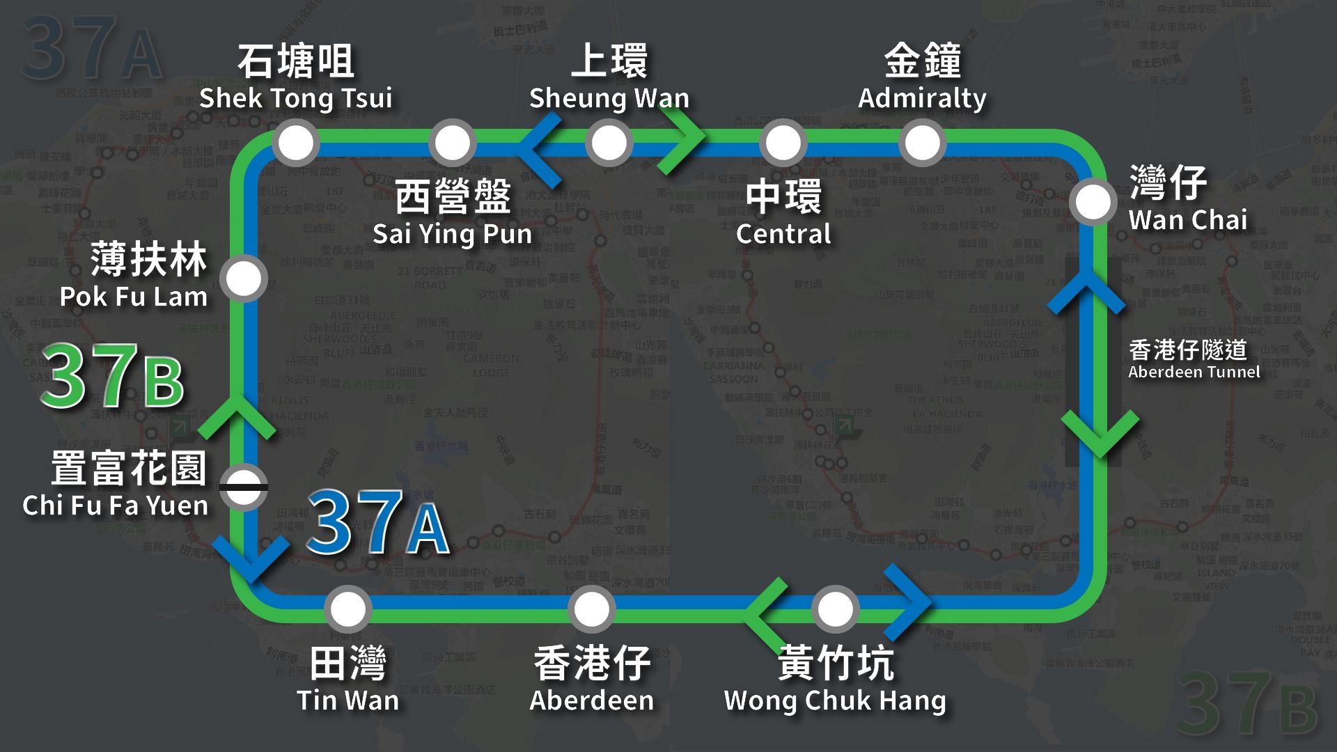 UP主: 封面: 简介:00:00 37A 置富花园 Chi Fu Fa Yuen ↺ 中环 Central (逆时针 Anti-clockwise)05:31 37B 置富花园 Chi Fu Fa Yuen ↺ 金钟 Admiralty (顺时针 Clockwise)=================...