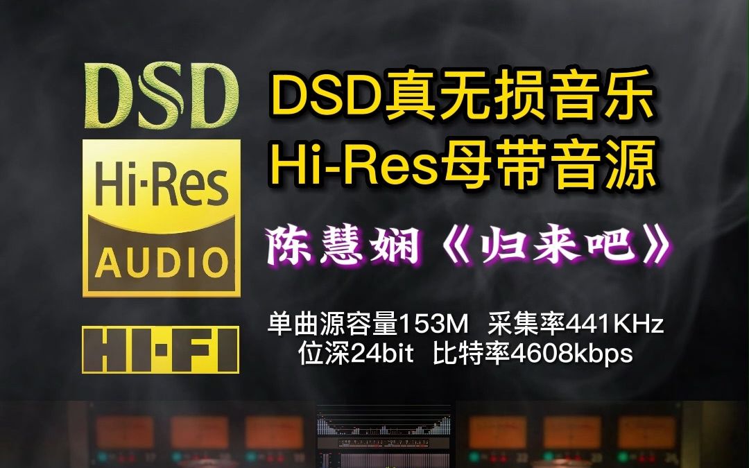 DSD真无损HIFI,感受极致音质效果,陈慧娴《归来吧》,单曲源容量153M,采集率441KHz,位深24bit,比特率4608kbps