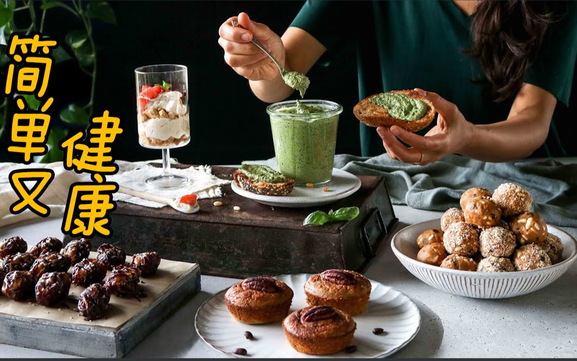 UP主: 封面: 简介:https://youtu.be/S1OJ3U2T4PY加拿大小姐姐Sadia为你带来5款健康又好吃的饱腹小零食,分别是柠檬酸奶冻、香蕉咖啡松饼、绿叶香蒜沙司、花生酱曲奇球和坚果酱枣。小姐姐不仅...