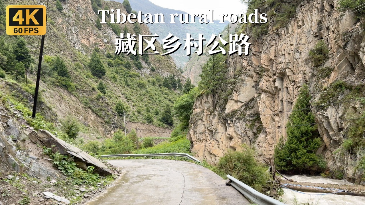 行驶在险峻的藏区乡村道路-四川省阿坝州小金县-4K