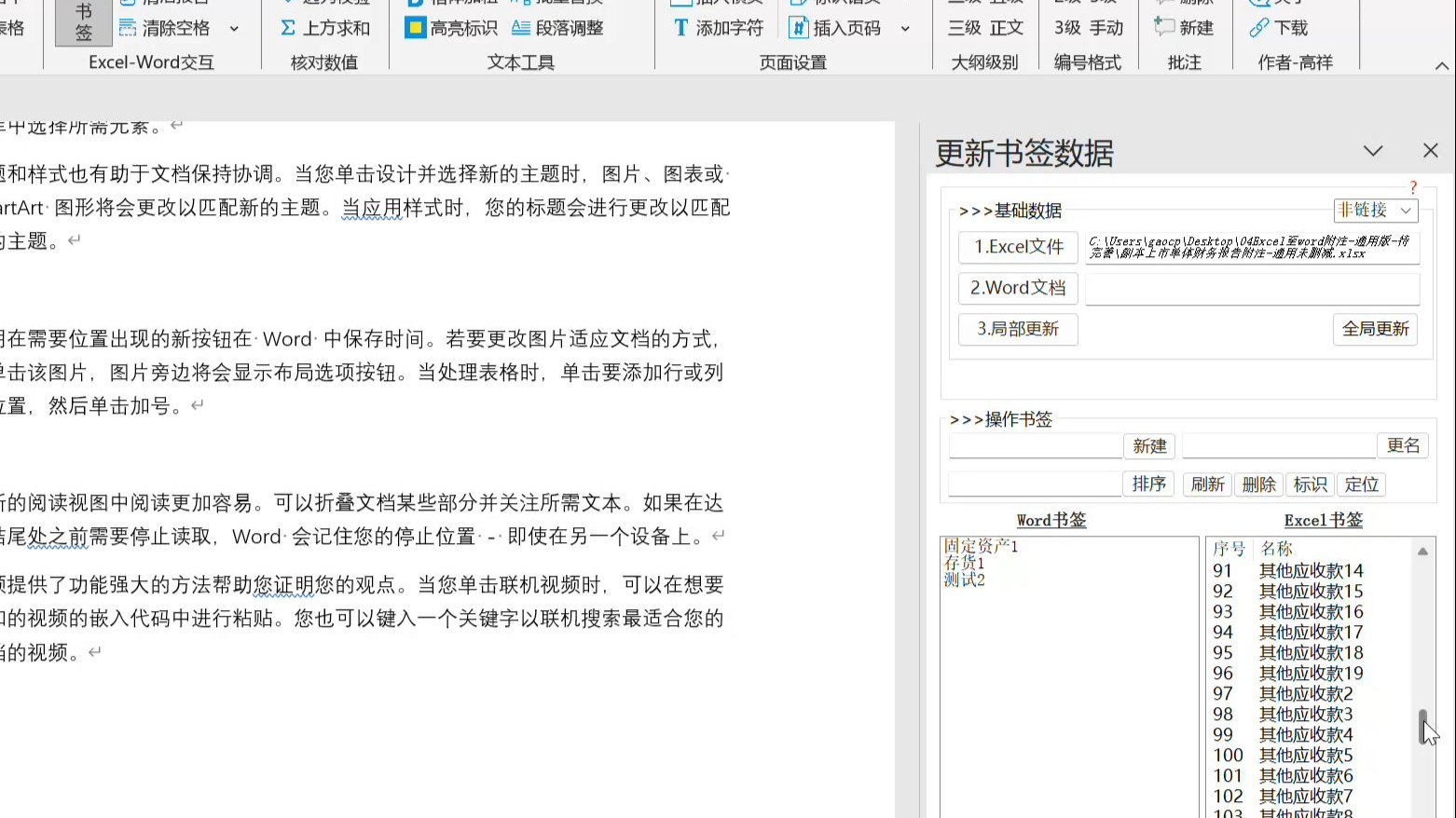 一种利用Excel自定义名称和Word书签快速刷新附注数据的方法