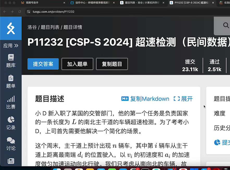 信息学奥赛C++复赛真题2024 CSP-S- T2 P11232 [CSP-S 2024] 超速检测-100