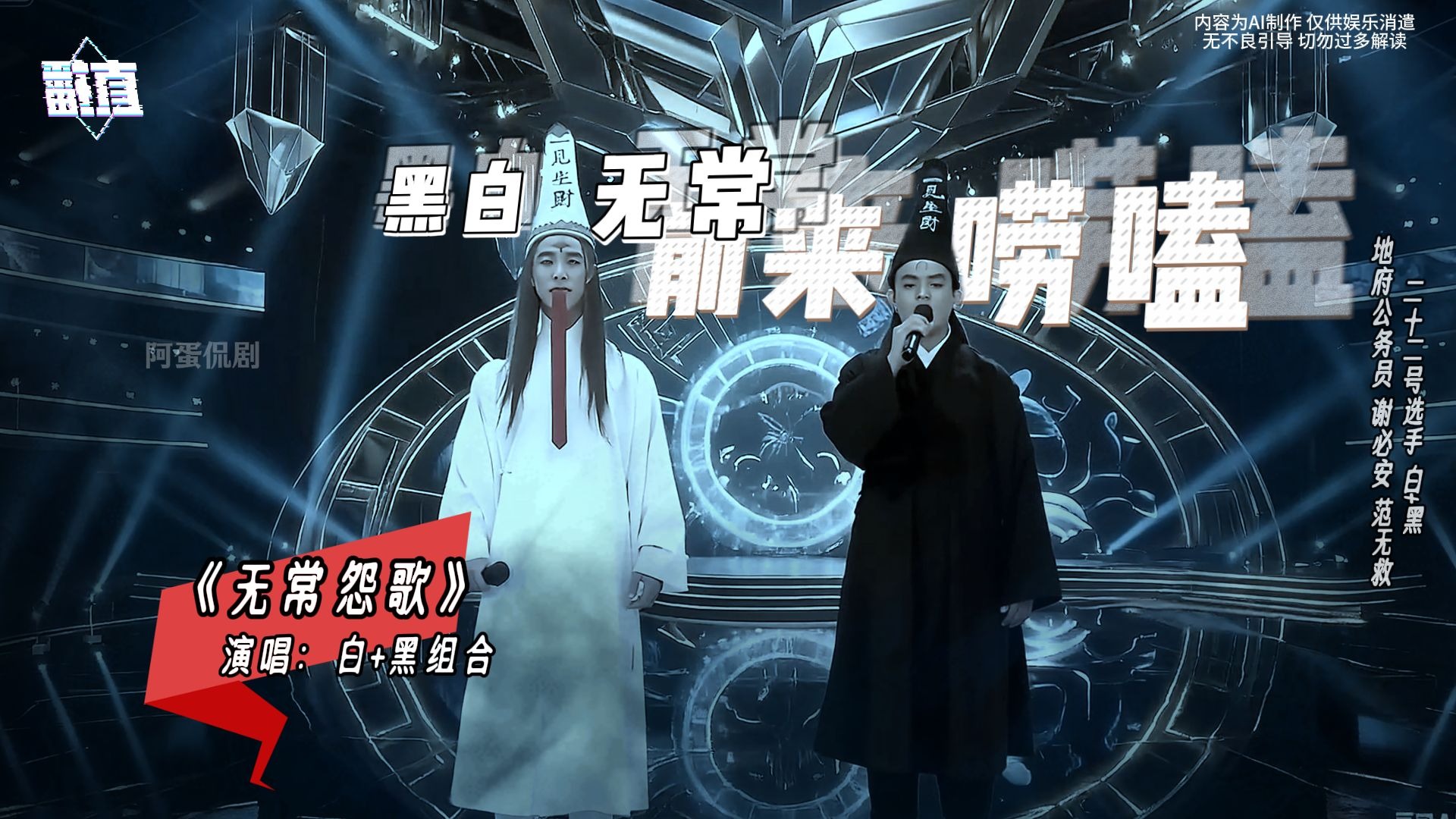 22号选手 白+黑组合 前来唠嗑,并带来了他俩的原创歌曲《无常怨歌》,您动一动发财的手指点个赞,就可决定选手是否晋级下一轮