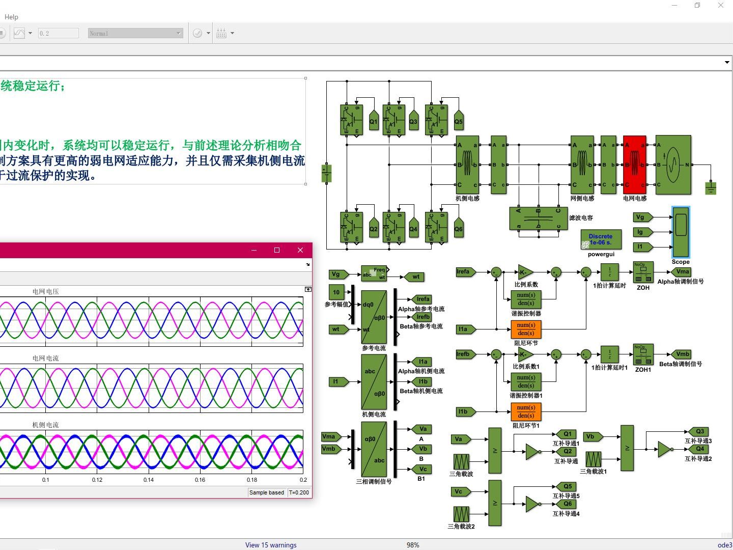 弱电网下,采用逆变器机侧电流反馈有源阻尼的强鲁棒性LCL型并网逆变器控制策略,考虑电网电感在0mH到10mH范围内变化,参数设计及Simulink仿真模型搭建