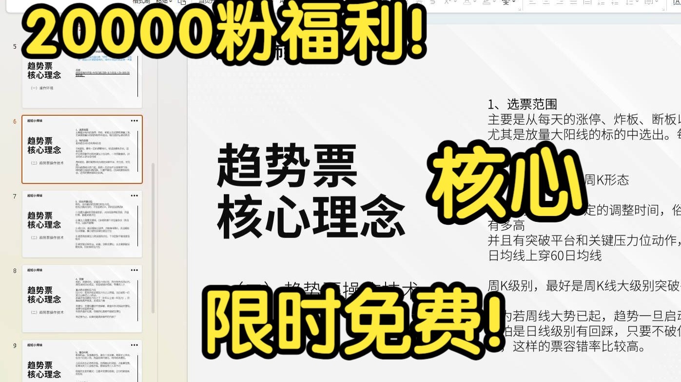超短小师妹的视频 黄金坑战法,精准抄底反转 趋势票理念核心操作!粉丝福利,限时免费! 短线选手怎么看竞价 游资战法,手把手详细教学,案例讲解 爆量黄金坑,买在起涨点 资金角度看竞价 见证历史!“天塌不下来”! 一进二,双涨停! 10000粉福利! 主力行为学! 弱转强战法,低吸大长腿 二板定龙头!胜率90%一进二选股! 短线博弈细节,分歧大小如何判断,主力vs散户 趋势票实战技巧,核心操作解析 股票卖点,分时抓减仓信号 卖点 2 一招辨别,涨停板出货,不接最后一棒