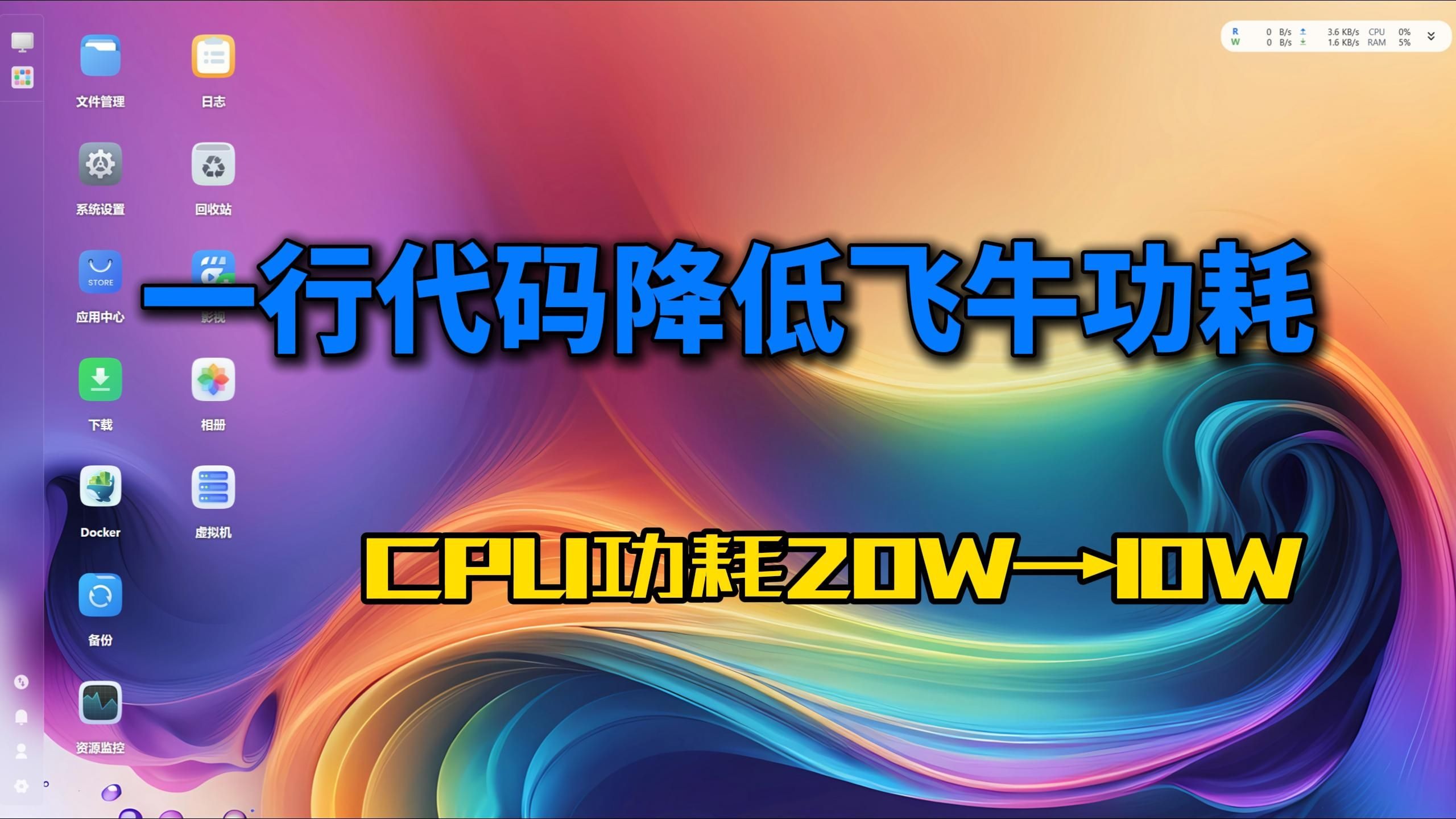 UP主: 封面: 简介:之前看评论区有朋友访问飞牛能不能调,就出了这个视频,如果你的默认就是powersave就当安装个s-tui看更多信息和切换performance模式的吧博客:https://www.geekxw.top制作不易...
