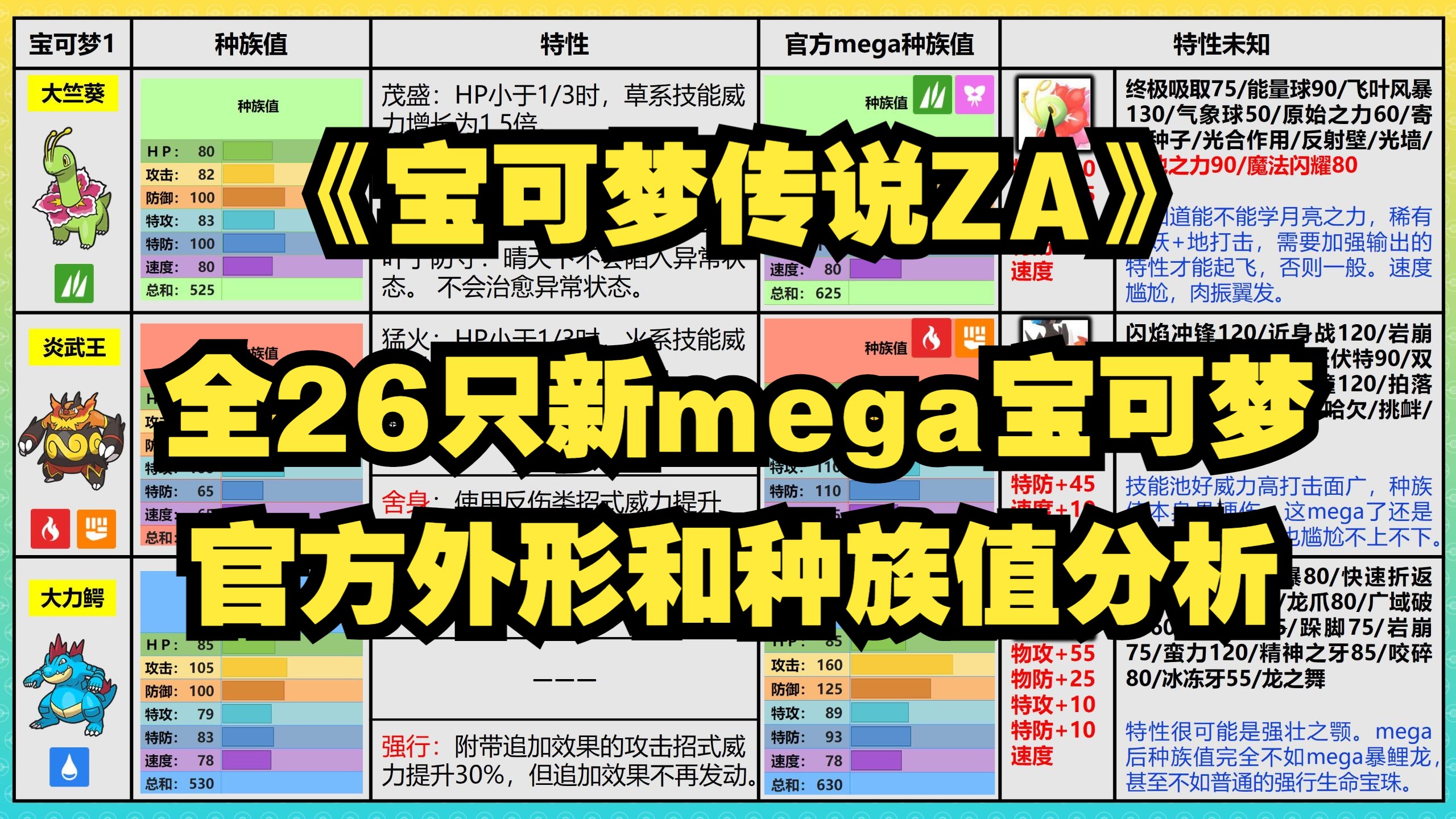 ShowBL > 全26只新mega宝可梦外形和种族值分析【宝可梦传说ZA】