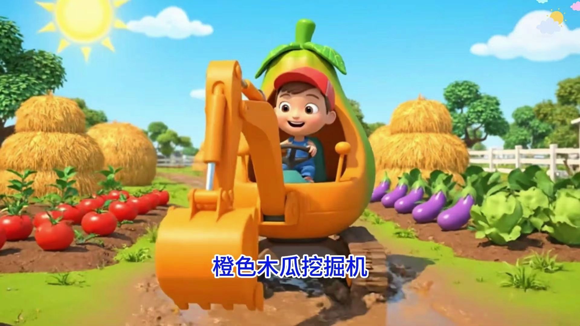 木瓜挖掘机在农场快乐忙碌,传递劳动的快乐,工程车系列儿童益智早教动画片