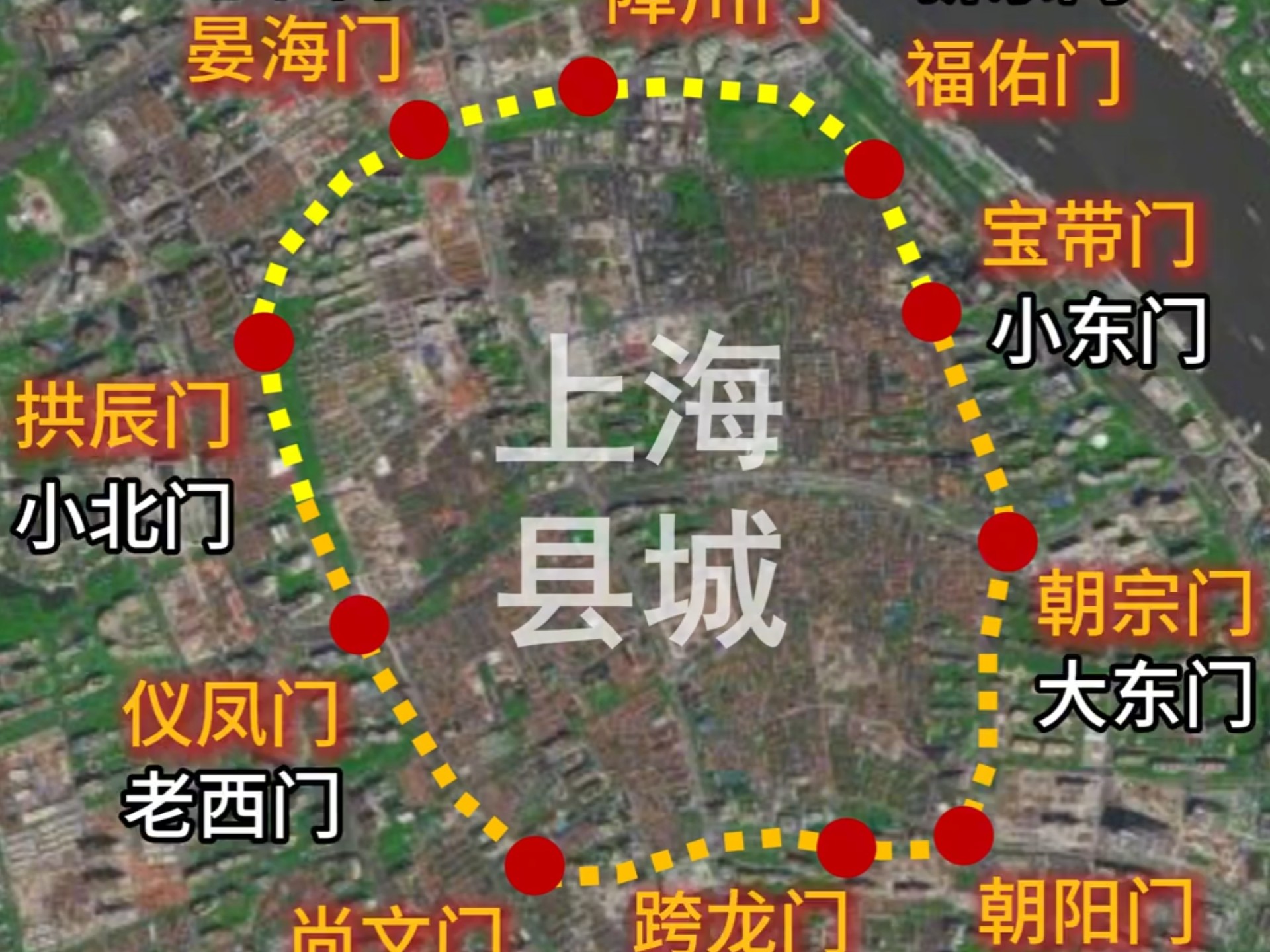中华路人民路围成的上海县城,有10座城门。