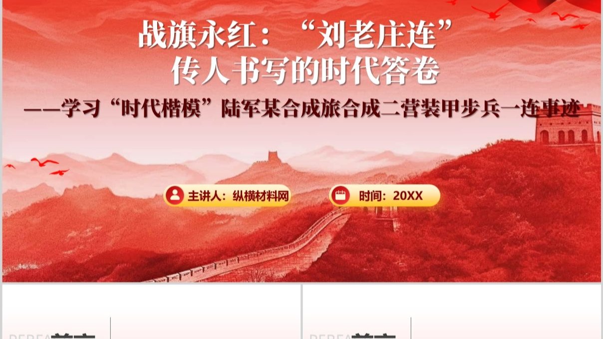 时代楷模刘老庄连的英雄传人事迹PPT模板