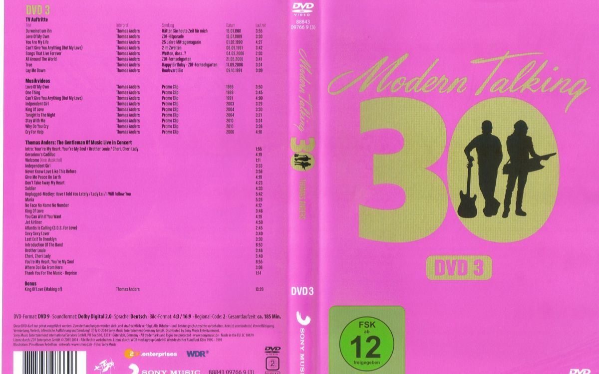 UP主: 封面: 简介:DVD光碟压制Modern Talking - 30(DVD3)Thomas Anders: The Gentleman of Music Live in Concert曲目1. Intro: Your're My Heart, Your're My Soul / Brother Louie / Che...