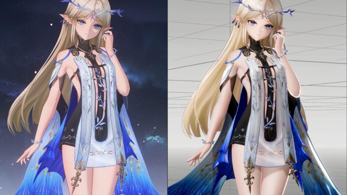 尝试用终末地的渲染方案渲染鸣潮角色。没有表情动画所以小卡看起来呆呆的,实在不知道怎么提取(卡通渲染还是太吃资产了,只有Shader没什么用,得有能撑得起这套方案的角色...