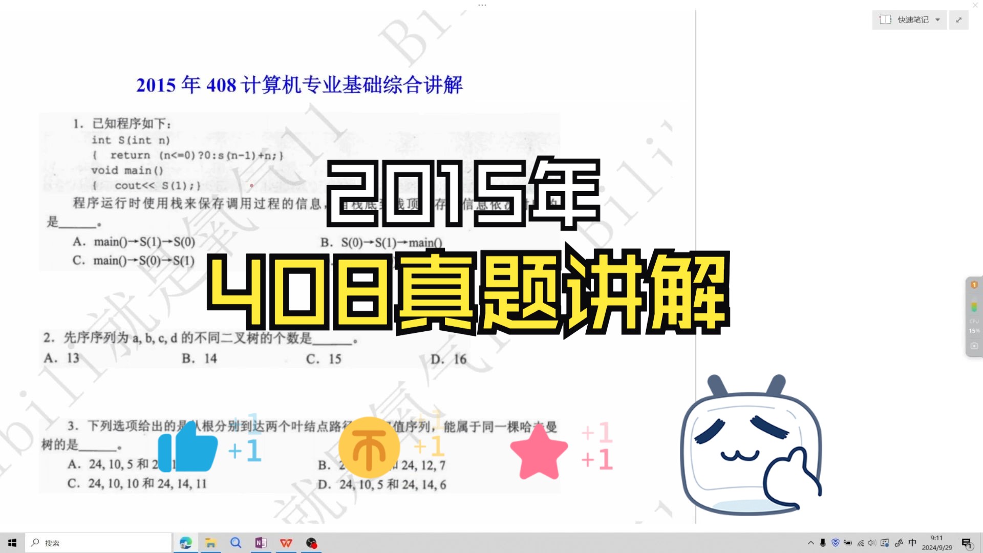 2015年计算机专业基础综合408真题讲解