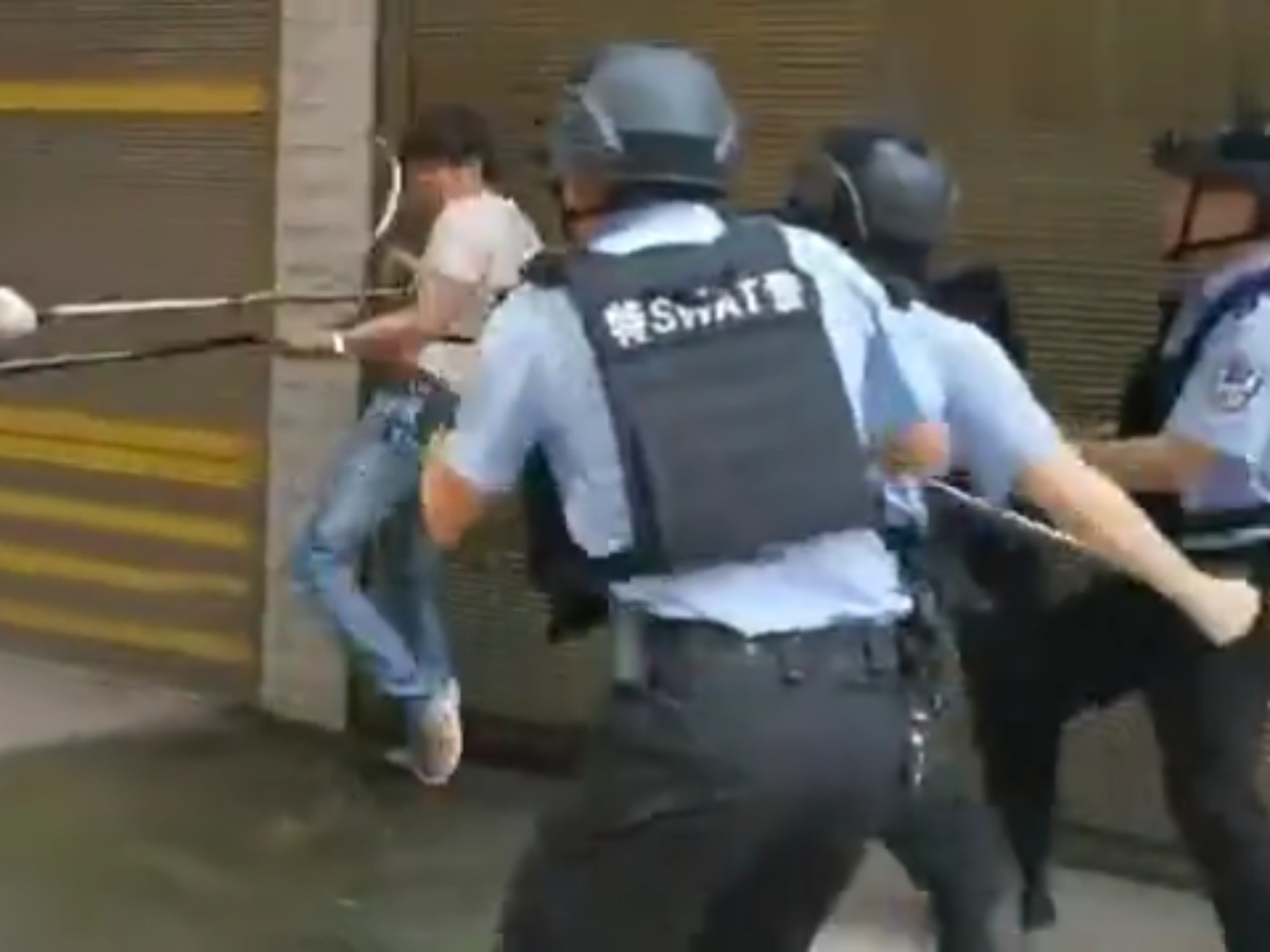 警方抓捕持刀男子现场