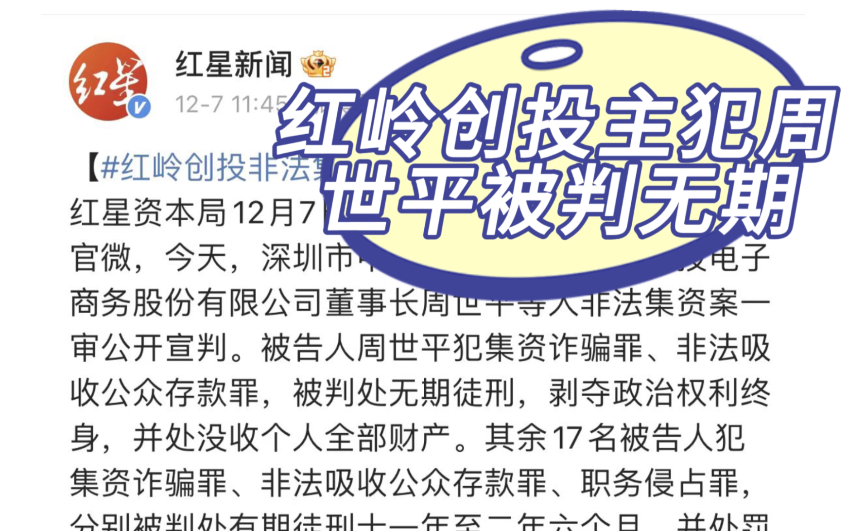 红岭创投主犯周世平被判无期!