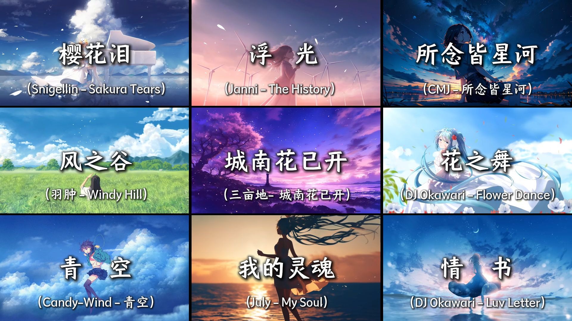 UP主: 封面: 简介:00:00 Snigellin - 樱花泪/Sakura Tears03:03 Janni - 浮光/The History07:14 CMJ - 所念皆星河10:53 羽肿 - 风之谷/Windy Hill15:53 三亩地- 城南花已开20:07 DJ Okawari...