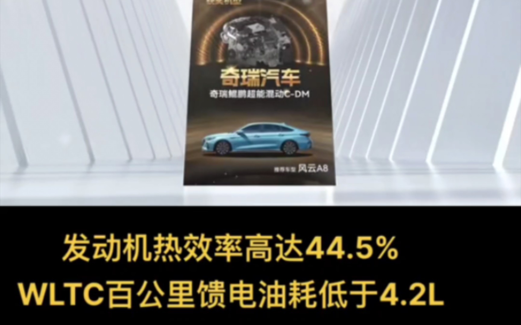 奇瑞风云A8发动机热效率高达44.5%WLTC百公里馈电油耗低于4.2L