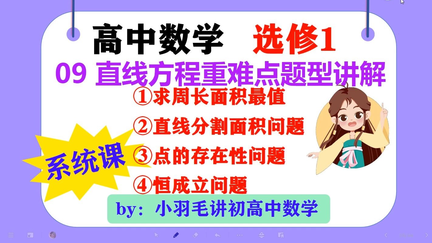 【高中数学选修一系统课】09 直线方程重难点题型讲解|求周长面积最值|直线分割面积问题|点的存在性问题|恒成立问题