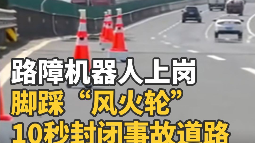 路障机器人上岗 脚踩“风火轮” 10秒封闭事故道路