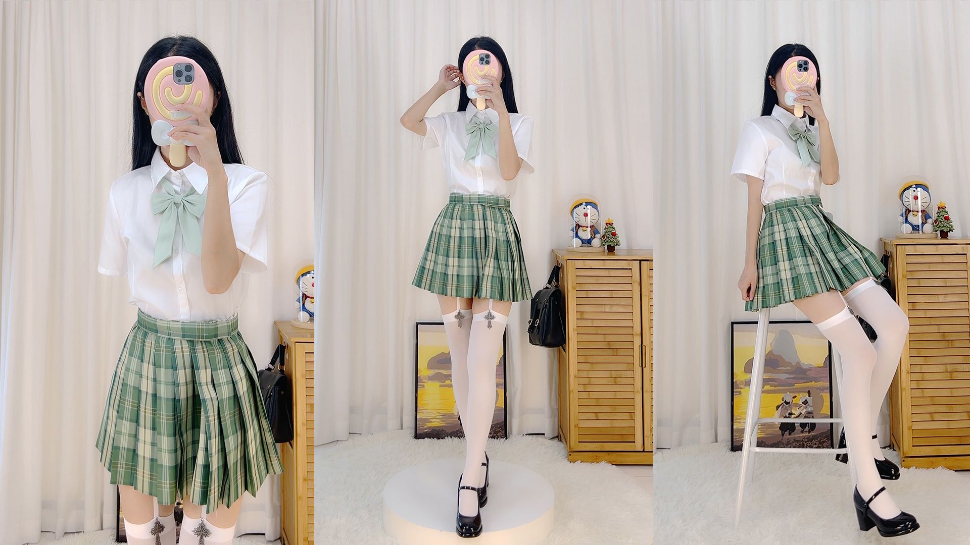 绿格裙配白色吊带袜 | 小学妹的jk日常