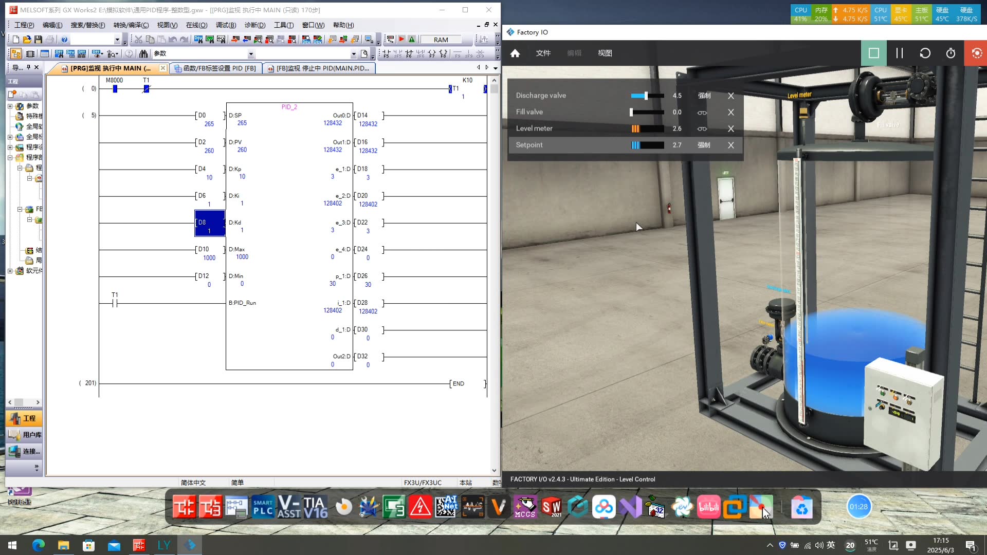 还是一样的PID公式,在三菱PLC效果展示。