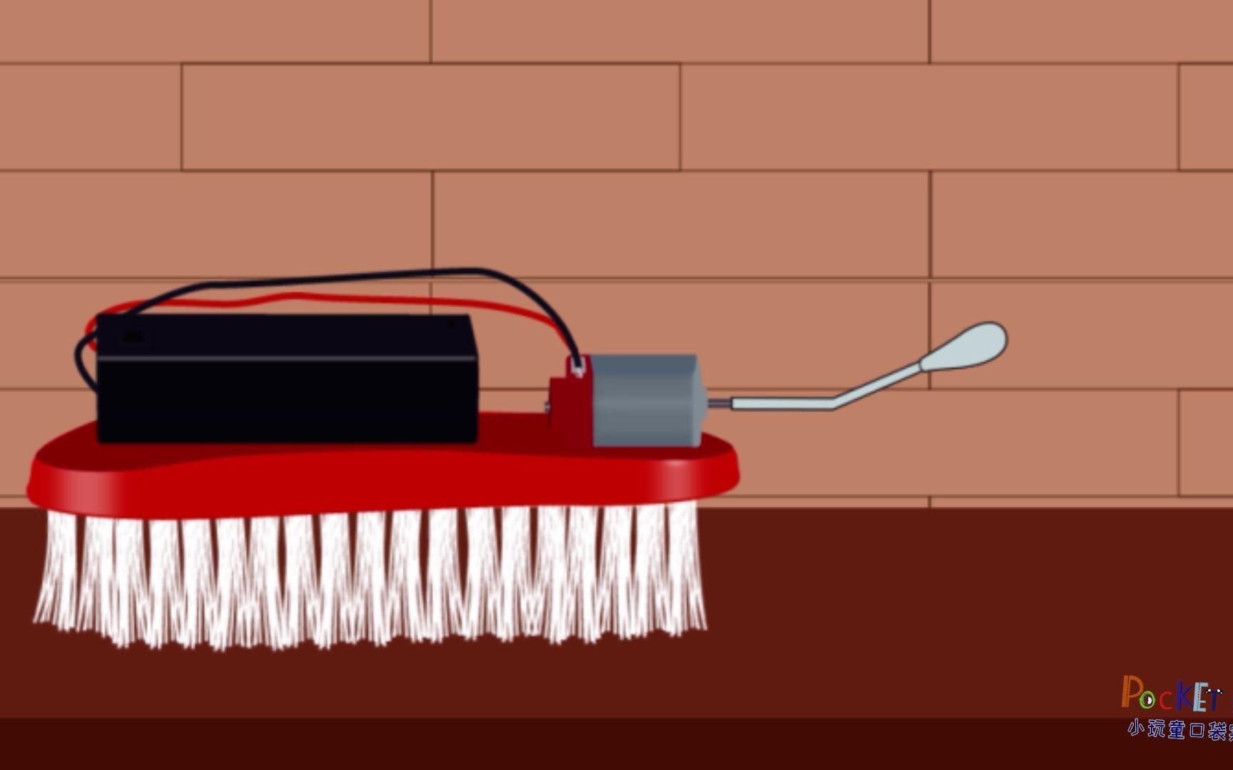 刷刷车在震动时,刷子的刷毛会受力弯曲,棉签向下转动的时候,压迫毛刷,会导致毛刷弯曲发生弹性形变。当棉签向上转动的时候,毛刷恢复形状,这样刷刷车就一直不断地在振动...