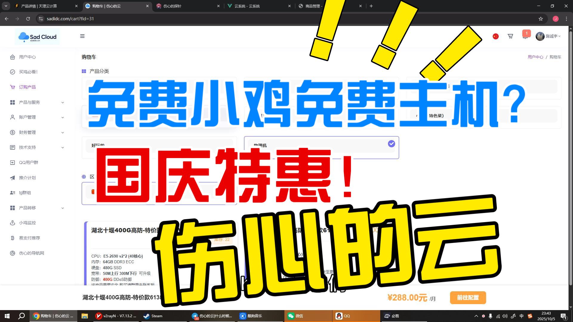 UP主: 封面: 简介:官网sadidc.com (之前是.cn 我换掉了)用户群:1007230156 免费鸡上架群里有通知哦服务器就是小型的lxc哈,目前总计发了四百多台了 还有三天会一直发 大家在群里看信息 都...