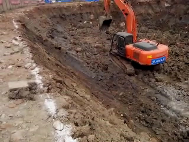 挖掘机修边坡过程