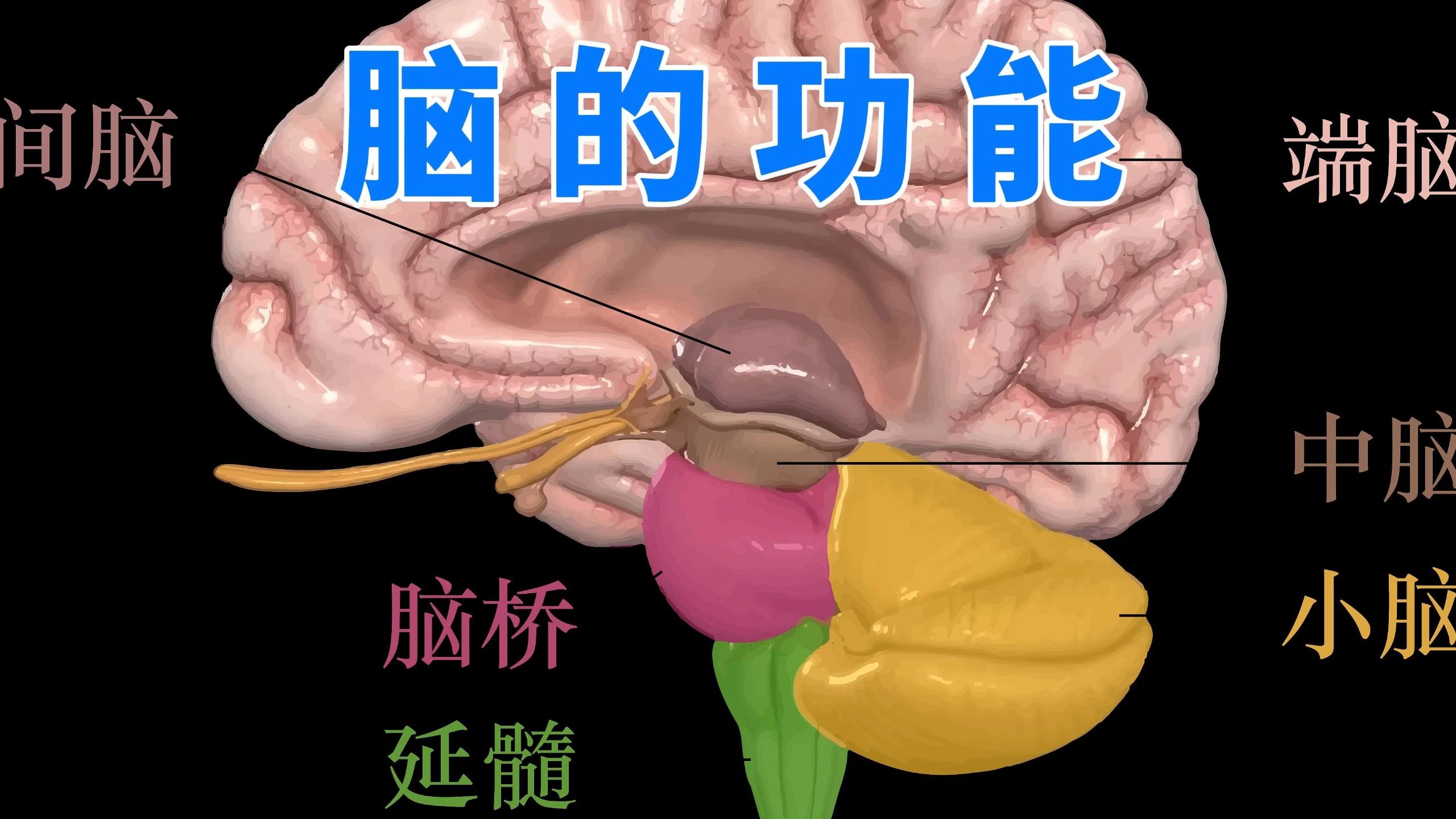 本期视频,我们将通过精美的动画为您阐述人脑的工作原理。人脑一般分为六个部分,它们分别是端脑、间脑、小脑、中脑、脑桥和延髓,其中自下而上的延髓、脑桥和中脑共同构成...