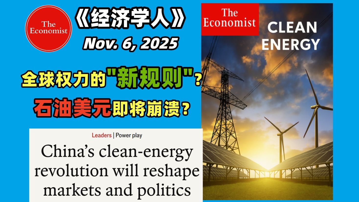 UP主: 封面: 简介:原文链接:https://www.economist.com/leaders/2025/11/06/chinas-clean-energy-revolution-will-reshape-markets-and-politics解锁原文PDF、中英对照、音频和完整版文稿 (...
