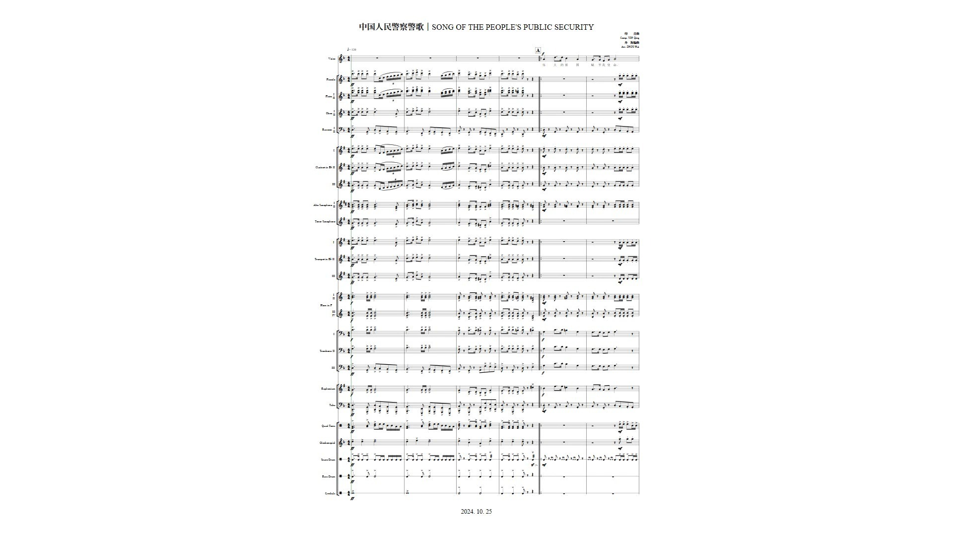 UP主: 封面: 简介:2024年10月受某警乐团委托编曲,2025年1月重新修订定稿。本曲使用noteperformer制作回放音频,如有实际演奏的曲谱需求,可私信联系up主。Up主非专业人士,乐曲中存在的各种...