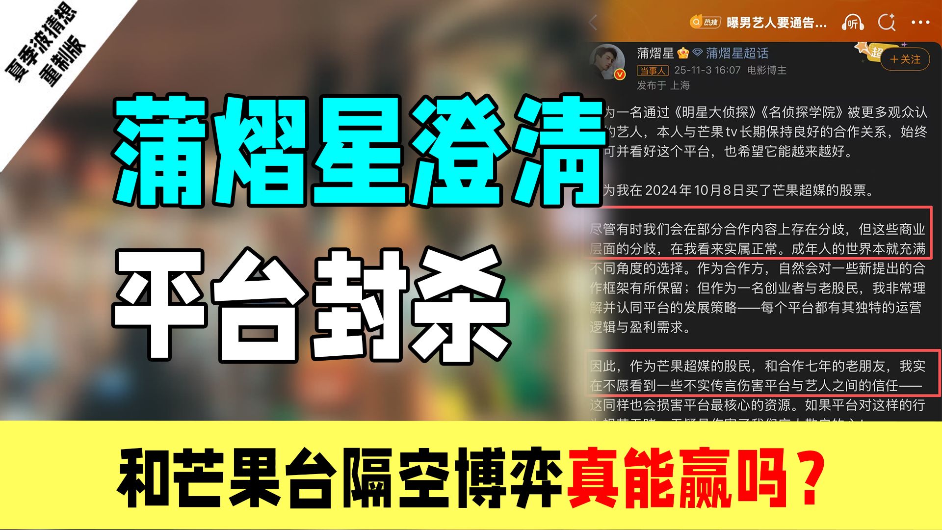 唯一讲述者的视频 蒲熠星通告费封杀事件:和芒果台的隔空气博弈能赢吗?! 三角洲优化舆情危机:策划怎么这么喜欢教玩家怎么玩游戏呢? 公关视角复盘农夫山泉翻车! 农夫山泉到底犯了什么罪? 良品铺子公关翻车:这个逆天锁脖太炸裂了!