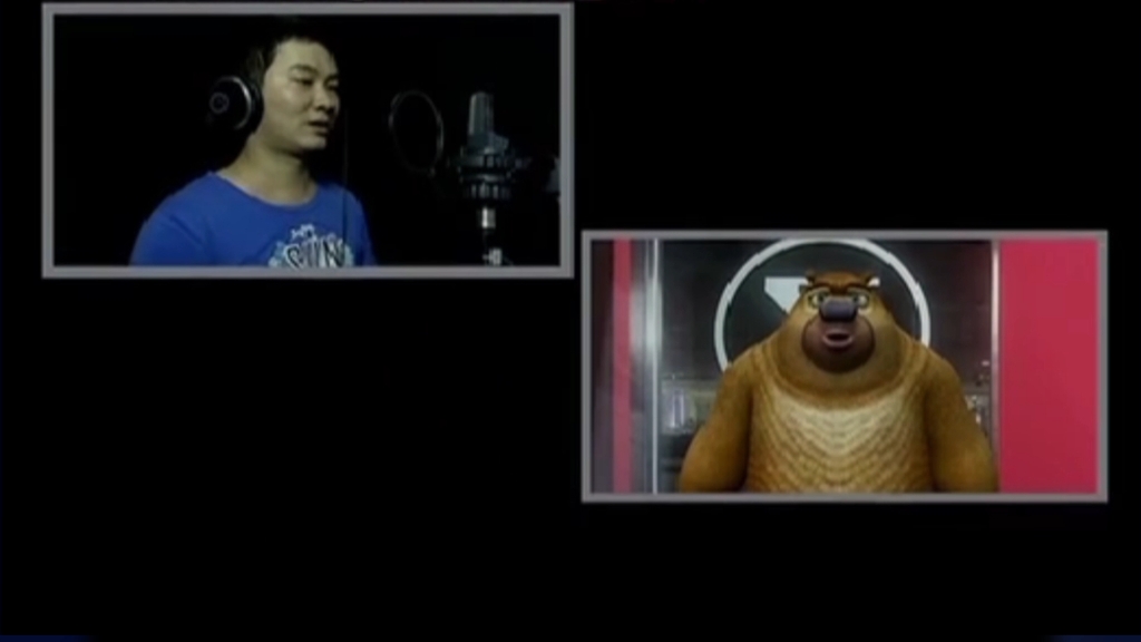 熊二与现实中自己的配音演员互动。