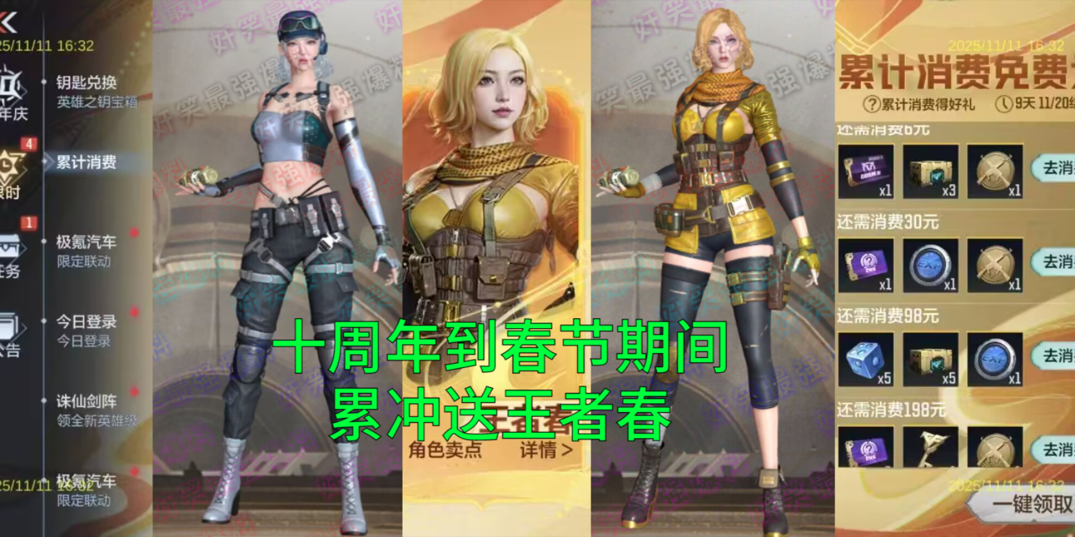 【CF手游】十周年到春节版本期间累冲送王者春还有手环和头套!