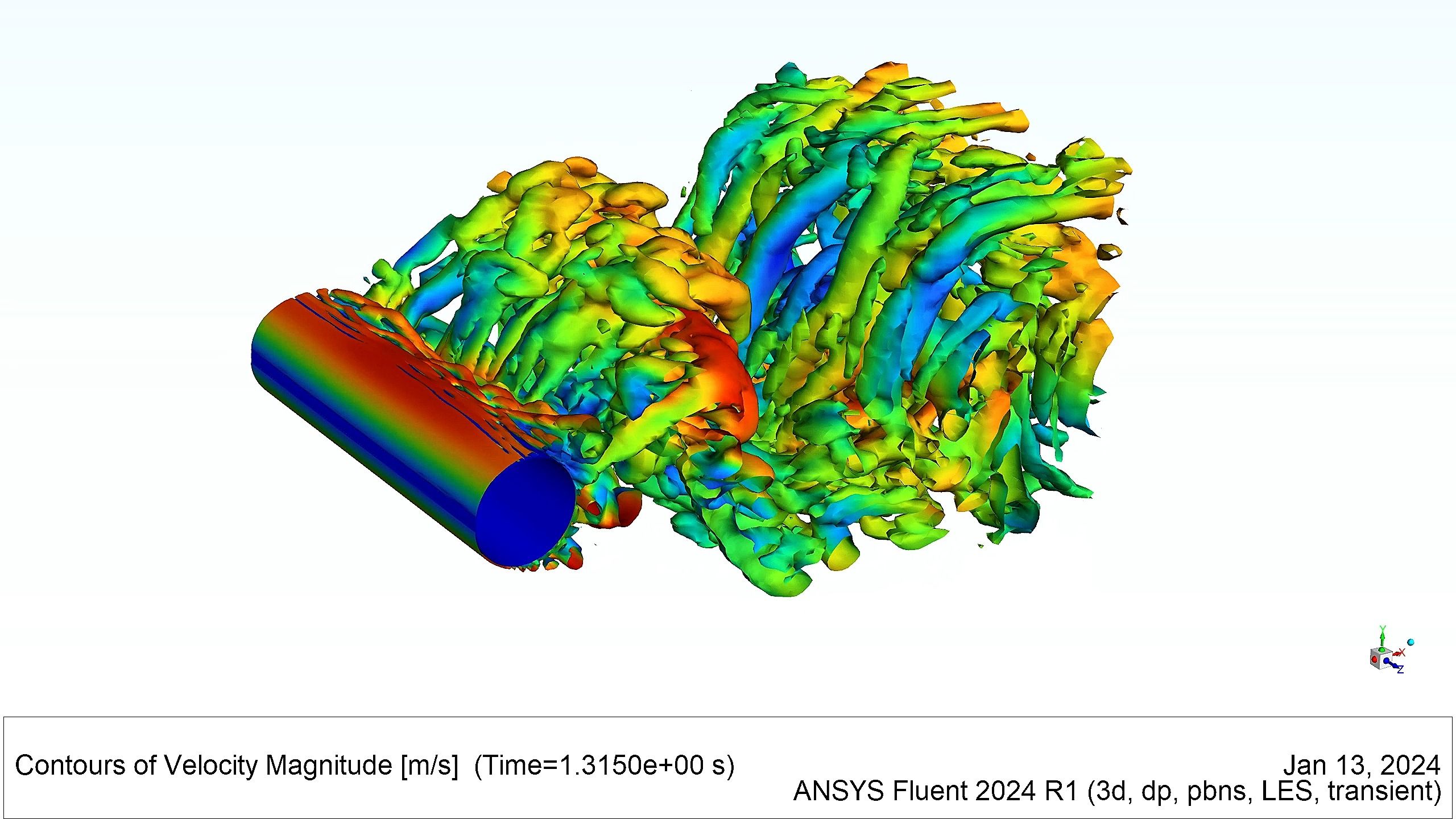【LES大涡模拟】三维圆柱绕流Fluent_2024R1___Native GPU Solver___RTX2070_8G