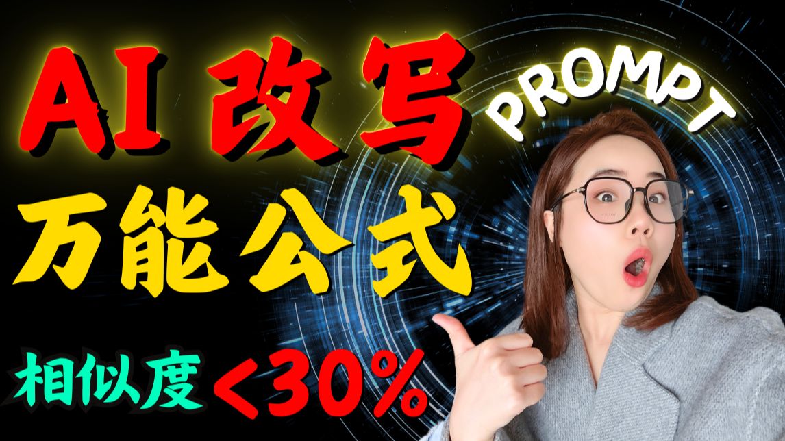 UP主: 封面: 简介:我花了两周时间,研究出了这套 AI 改写提示词。只需要5个步骤,3分钟,你就能轻松实现AI 改写。本期内容的思路价值4位数,一定要看到最后哦,我会具体讲解AI改写指令全流程...