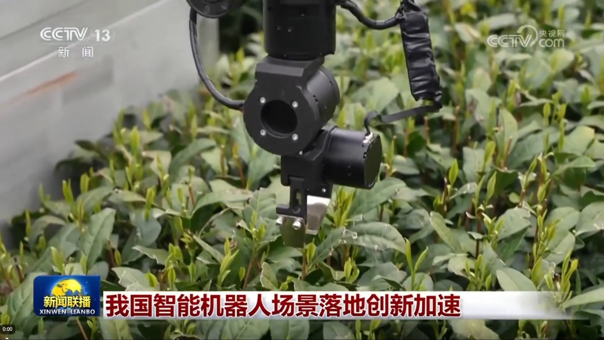 中央电视台《新闻联播》报道浙江理工大学采茶机器人